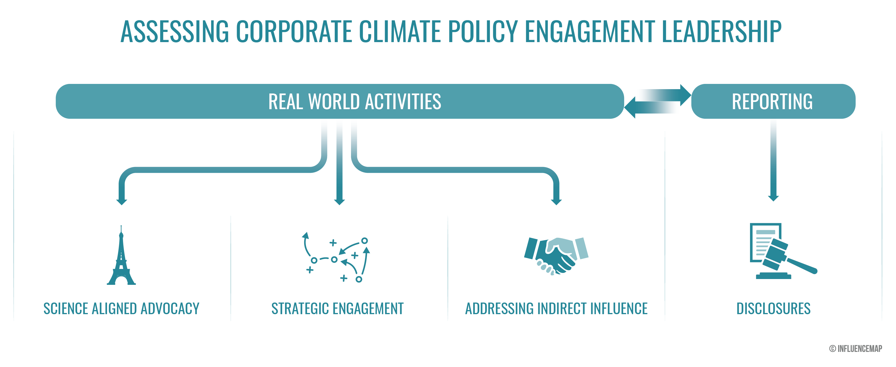 InfluenceMap regularly publishes its “Global Leaders in Climate Policy Engagement” report to identify the companies around the globe that are most actively supporting climate policy ambition. The report fully aligns with and reflects a number of other frameworks and standards offering guidance around climate policy engagement, including but not limited to:
